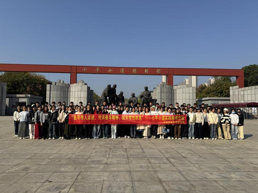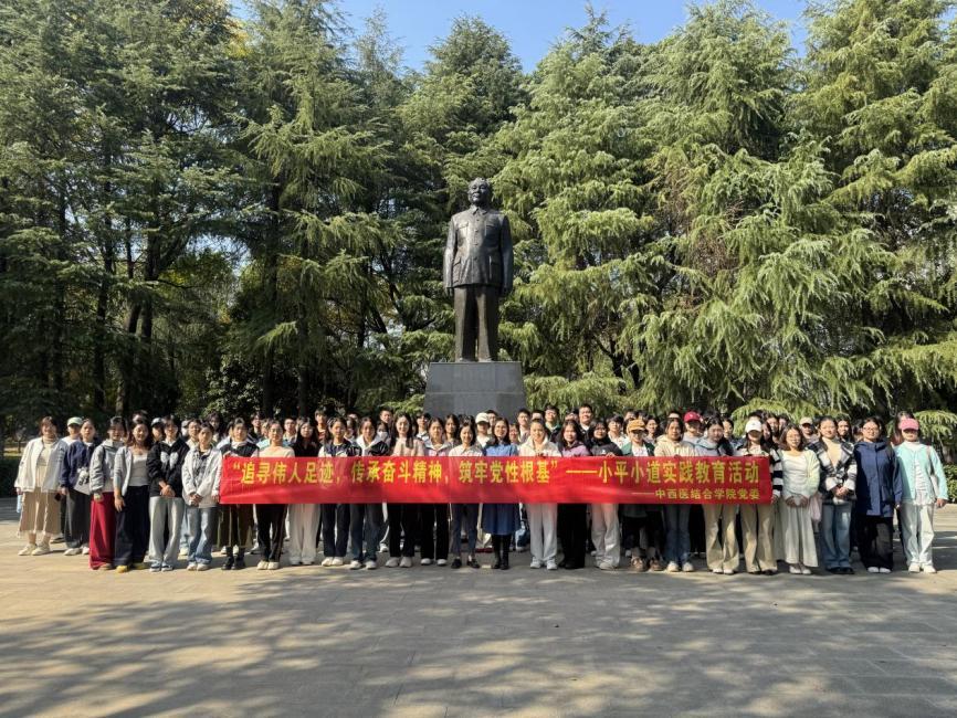 (通讯员:钟小青)为深入学习贯彻习近平新时代中国特色社会主义思想,加强青年学子党性修养与理想信念教育,引导入党积极分子从红色历史中汲取奋进力量,2025年11月15日,中西医结合学院党委组织第四期入党积极分子培训班全体学员,赴小平小道陈列馆开展“追寻伟人足迹,传承奋斗精神,筑牢党性根基”主题实践教育活动。