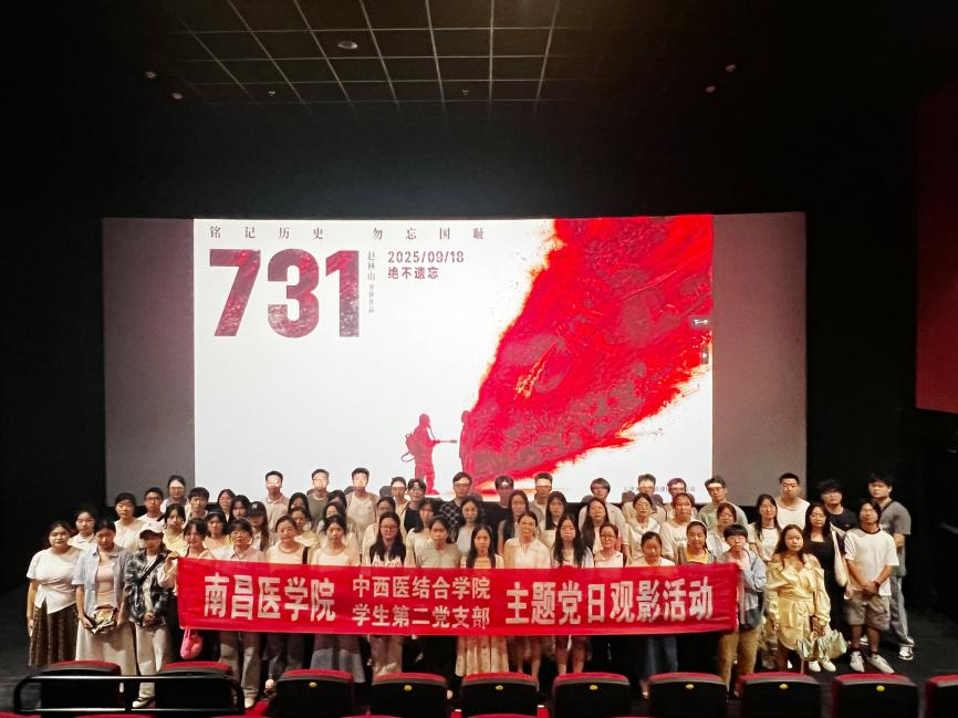 (通讯员:陈丽)为深入传承伟大抗战精神,引导学生从历史中汲取奋进力量、筑牢信仰根基。南昌医学院中西医结合学院学生第二党支部于9月27日下午,组织全体党员及入党积极分子赴南昌新建城万达影城,开展“弘扬抗战精神 锤炼过硬作风”主题观影活动,集体观看电影《731》,将红色教育从课堂延伸至校外活动实践。